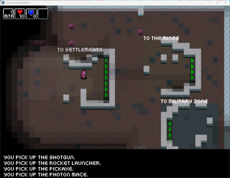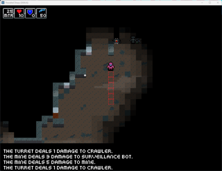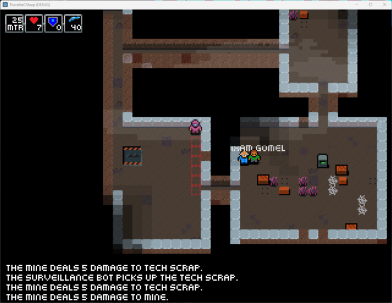 Some level tiles can be mined by player and yield different forms of loot and treasure. Beware, however, as the mining activity can also make (more) nasties aware of your presence.